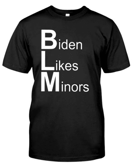 Biden Likes Minors BLM T-shirt Print by Clothenvy. made and sale premium t-shirt gift for him or her. I use only quality shirts such as Fruit of the Loom and Gildan. The process used to make the shirt is the latest in ink to garment technology which is also eco-friendly, available for men and women size. The picture will be printed using Direct To Garment (DTG) Printing Technology in full color with durable photo quality reproduction NOT use heat transfer method.